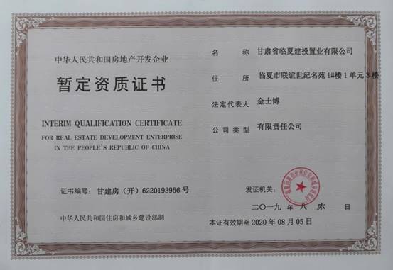 近日,臨夏公司正式取得房地產(chǎn)開發(fā)暫定資質(zhì)證書。該證書的取得標志著公司正式進入臨夏房地產(chǎn)開發(fā)市場。
