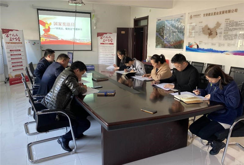黨支部以《中華人民共和國憲法》及習近平依法治國相關重要論述為依據(jù),從憲法進企業(yè)的角度講述在企業(yè)開發(fā)建設中的作用,要求全體職工加強憲法學習,不斷增強憲法意識,維護憲法權威。會上,黨支部書記對全體人員進行憲法理論知識測試,進一步鞏固憲法學習內(nèi)容。