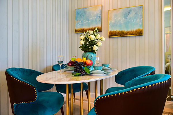 85?戶型樣板間選用蒂芙尼設計風格,映襯深受年輕人喜愛的小型戶型格局。裝修風格蘊意獨特溫馨,將戀人們的心聲娓娓道來,不迎合,不造作。
